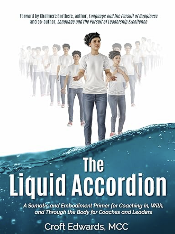 The Liquid Accordion: A Somatic and Embodiment Primer for Coaching In, With, and Through the Body for Coaches and Leaders invites you into this missing dimension. Master Certified Coach (MCC) Croft Edwards offers a clear, practical roadmap for integrating somatic and embodiment work into your coaching practice. You’ll find accessible theory, vivid illustrations, and step‑by‑step examples you can bring directly into your sessions.